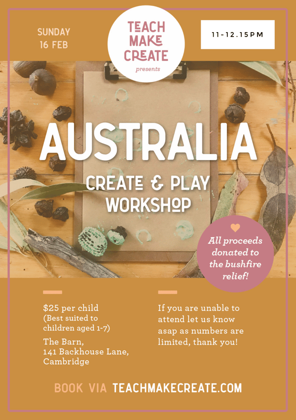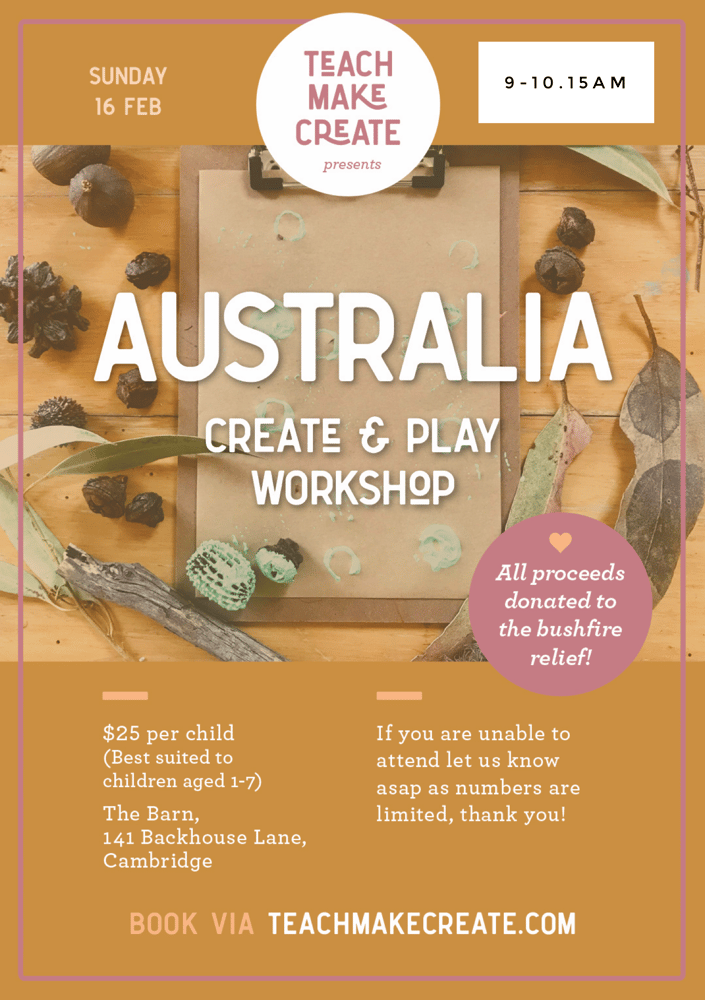 Come along to the barn to experience a wide range of create and play Australia themed activities. Proceeds will go to bushfire relief.